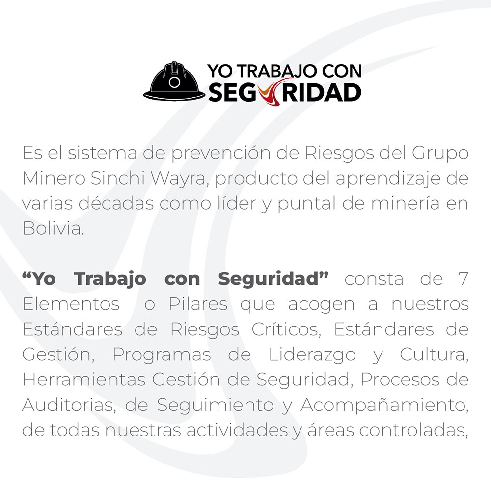 Por otra parte en cumplimiento con la normativa laboral, a momento de contratar a un trabajador este tiene que asistir a una evaluación de salud con un grupo de especialistas independientes con el fin de determinar el estado en el que está ingresando a trabajar en la empresa. En base a los convenios de delegación con la Caja Nacional de Salud, Sinchi Wayra a través del “Seguro Delegado” administra y gestiona la prestación de servicios de salud a nuestros trabajadores y sus familias. Este seguro es una instancia que debe regirse y cumplir con la normativa legal vigente de la seguridad social a corto plazo.