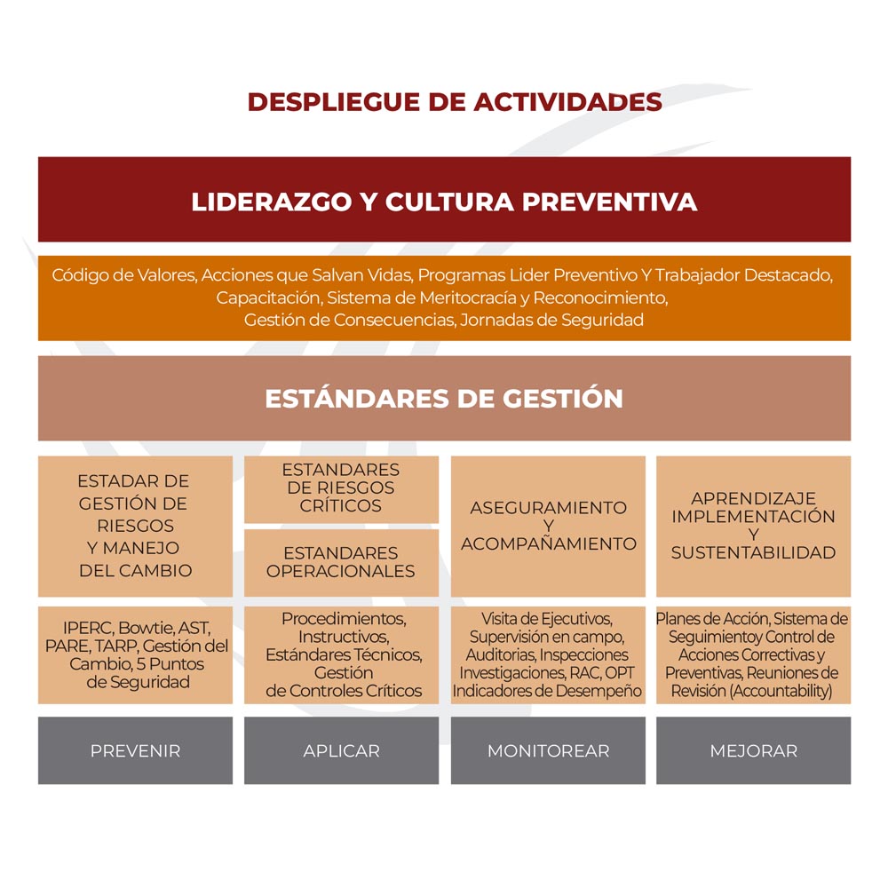 Nuestra prioridad respecto a la salud ocupacional es reducir los niveles de exposición y minimizar los riesgos y peligros de salud, principalmente aquellas enfermedades respiratorias, por exposición al polvo, como la silicosis y afecciones auditivas, vinculadas de las actividades que desarrollamos.